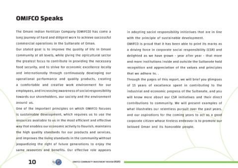 Our stated goal is to improve the quality of life in Omani a driving force in corporate social responsibility (CSR) and