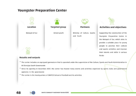 • The center is the headquarters of OMIFCO School of Football and its activities