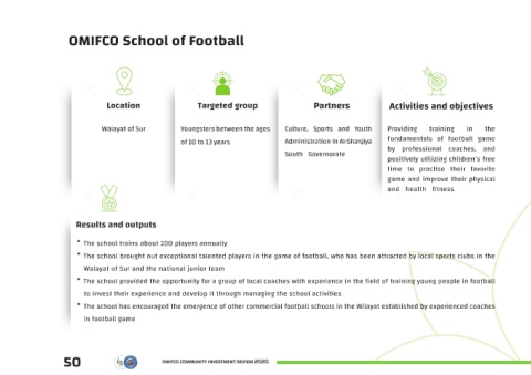 • The school has encouraged the emergence of other commercial football schools in the Wilayat established by experienced coaches