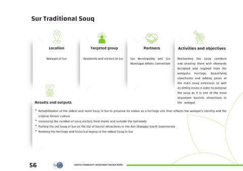 • Rehabilitation of the oldest and main Souq in Sur to preserve its status as a heritage site that reflects the walayat’s identity and the